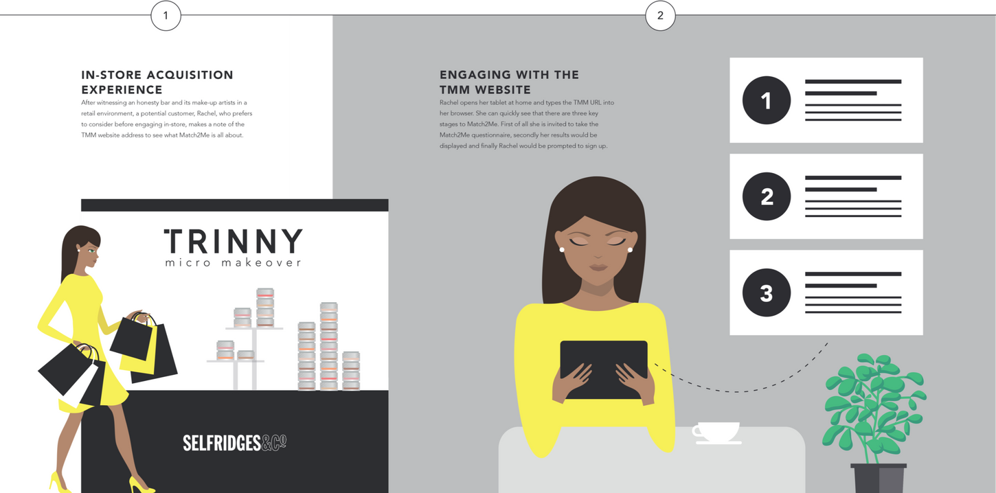 Solution: An omnichannel approach allows the customer to live the Trinny MicroMoment experience as if she were in-store. A transactional gateway will also bridge payments, voucher distribution, gifting, and an innovative auto-replenish function.